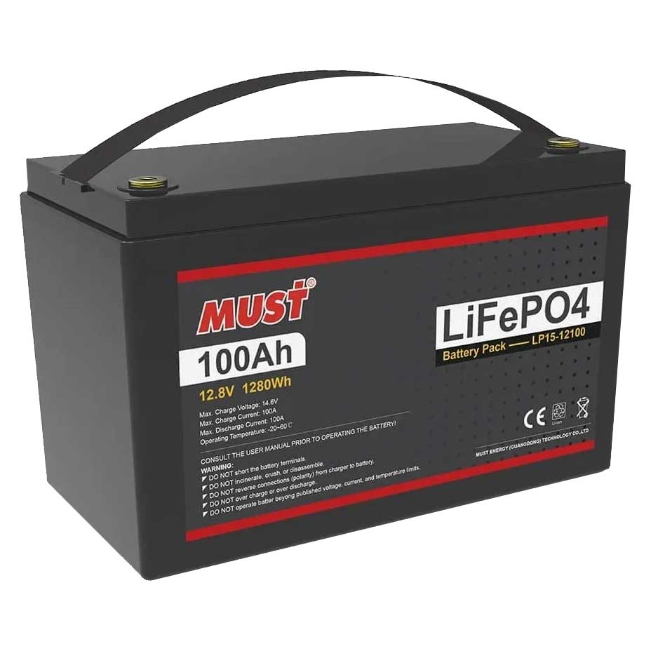 La batería de litio LP15-12100 de MUST ofrece una potencia excepcional y un rendimiento duradero para una amplia gama de aplicaciones. Con su capacidad nominal de 100Ah y voltaje de 12.8V, esta batería es ideal para alimentar sistemas de energía solar, vehículos eléctricos, sistemas UPS y más.