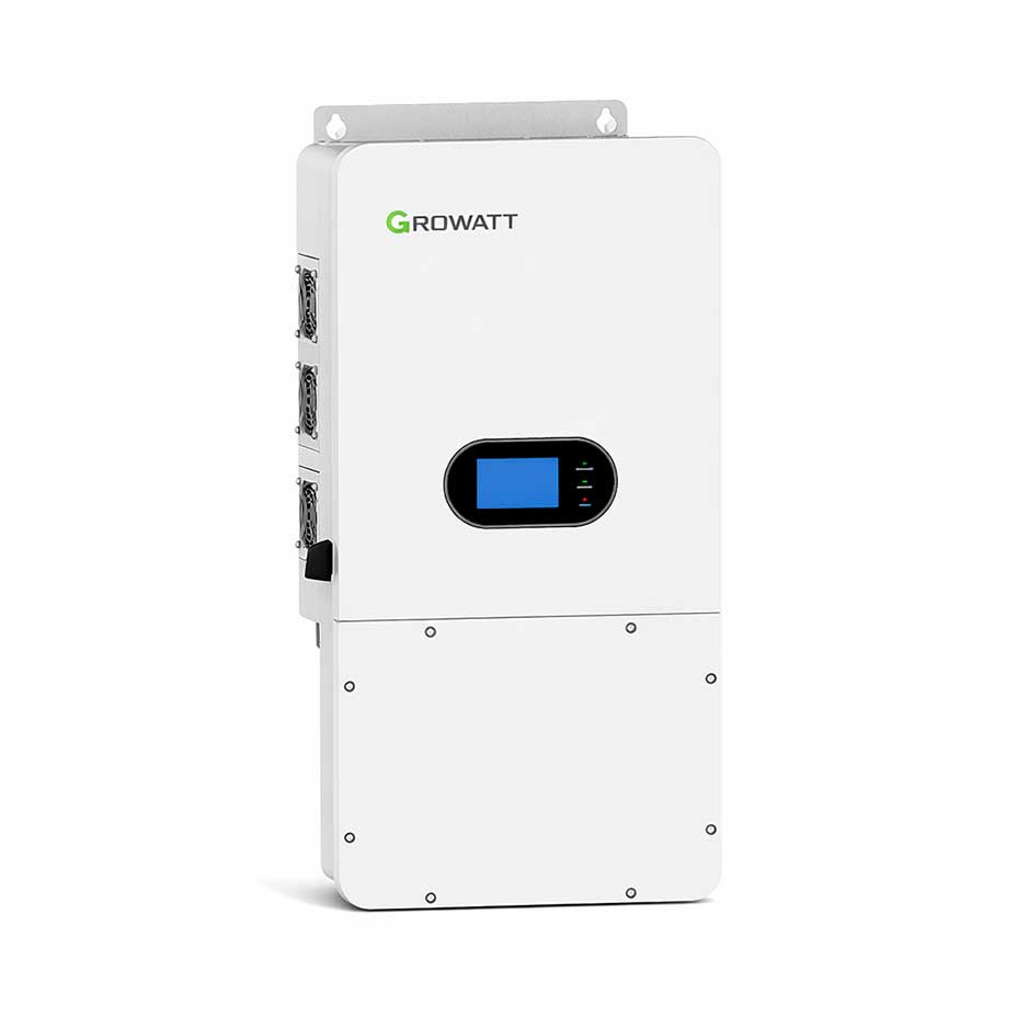 Inversor híbrido 10kW 120/240V con 3 MPPT, compatible con sistemas con red y con baterías (48V). Incluye función UPS con cambio ~10 ms, hasta 200A de carga/descarga, protección contra sobretensiones Tipo II en DC/AC, y opción de paralelizar hasta 6 unidades para crecer el sistema.